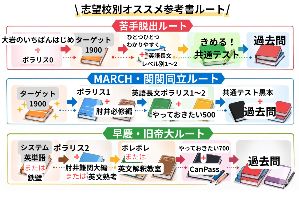 • 志望校別のおすすめ参考書ルート