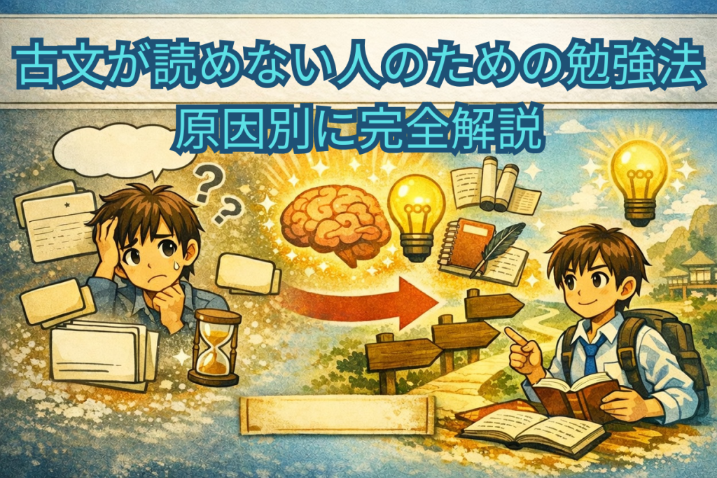 古文が読めない理由は人によって違います。単語不足・文法理解の浅さ・主語が誰か分からないなど、原因を正しく特定して対処すれば、必ず読めるようになります。