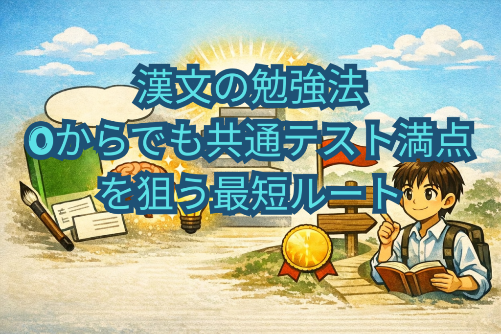 「漢文って何から始めればいいの?」「句法が覚えられない」「独学でどこまでできる?」——この記事ではそうした疑問をまとめて解決します。漢文は正しい順番で学べば、すべての科目の中で最も短期間で点数が伸びる科目の一つです。0から共通テスト満点を狙うための最短ルートを、ステップごとに完全解説します。