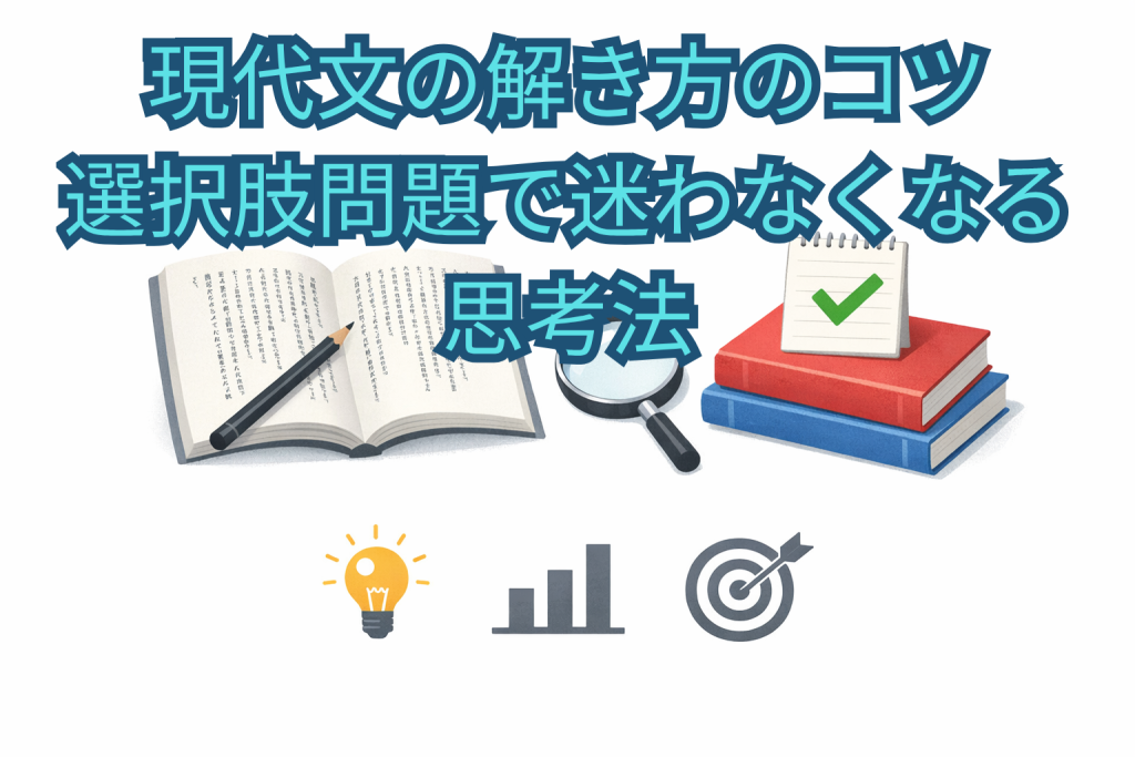 現代文の選択肢問題には、正解を絞り込むための「型」があります。この記事では、試験本番で点を安定して取るための具体的な解き方・思考法を解説します。