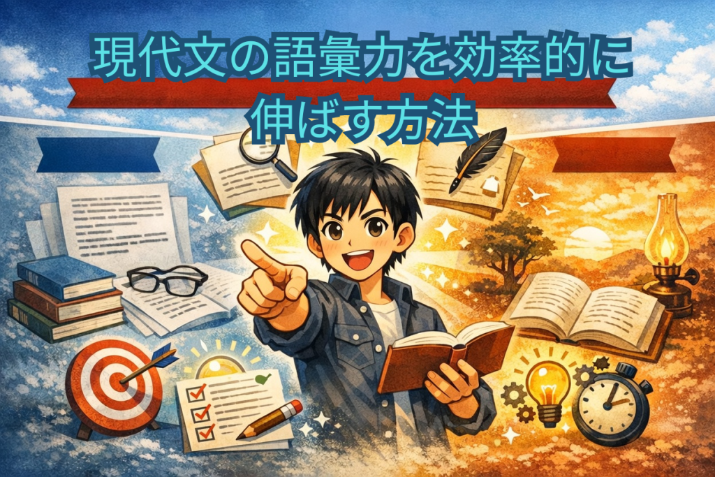 完全に別物として扱うのが正解です。現代文の語彙は「抽象概念の正確な理解」が目的で、古文単語は「現代語と意味がずれている語の記憶」が目的です。混同すると両方が中途半端になるため、時間帯や教材を分けて取り組みましょう。