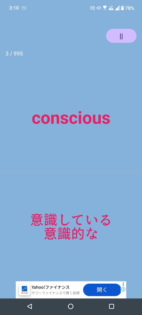 2. 画面をタップしなくても次々と単語&訳が自動表示